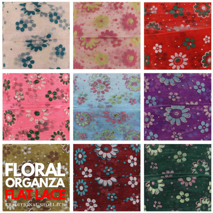These eye-catching organza floral fashion ribbon shoelaces come in a full array of colours; they look stylish, fun, elegant and fashionable. The thin and soft nature of organza floral lace makes it easy to work with, especially when you want to tie a large bow to be the centre of attention on your new shoes.